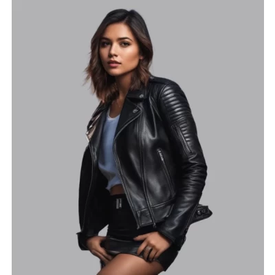 Raven's Edge Women's Black Leather Jacket with Rugged Sleeves