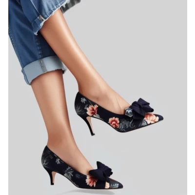 Elegance in Bloom Women's Black Floral Heels with Stylish Bow