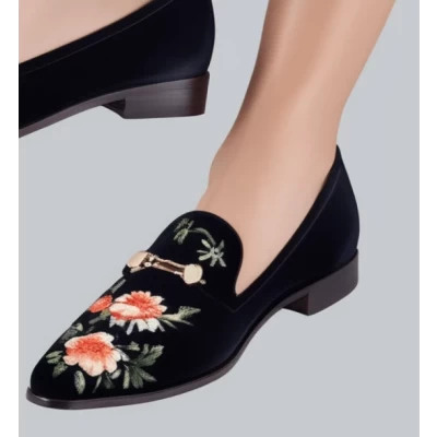 Blooming Elegance Women's Designer Floral Print Flat Shoes
